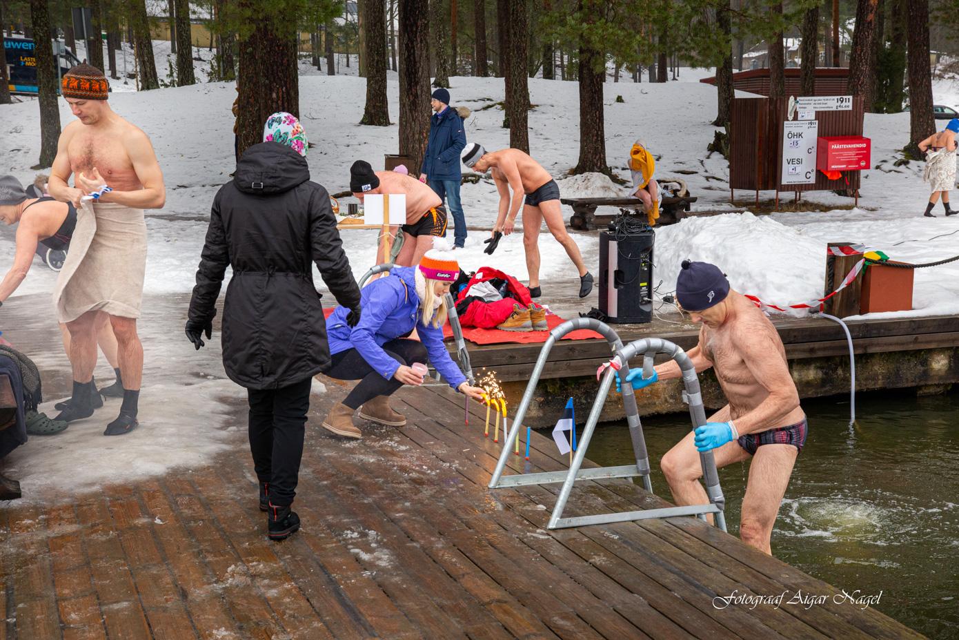 Võru talisuplejatest seltskond, kelle ametlik sotsiaalmeediagrupp sai loodud umbes aasta eest, tähistas ka möödunud kolmapäeval vabariigi sünnipäeva ühissuplusega, olles järjepanu kraadises järvevees vähemalt 103 sekundit. See oli juba teine kord, kui võrulased riigi sünnipäeva harjumuspäratult vastu võtsid. FOTOD: Aigar Nagel