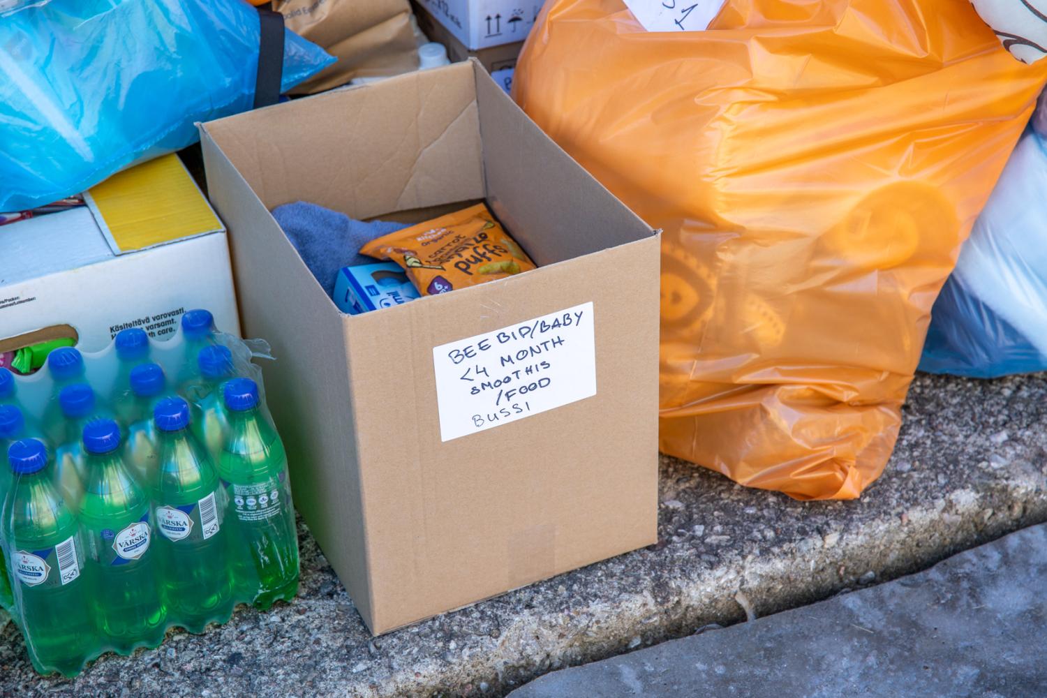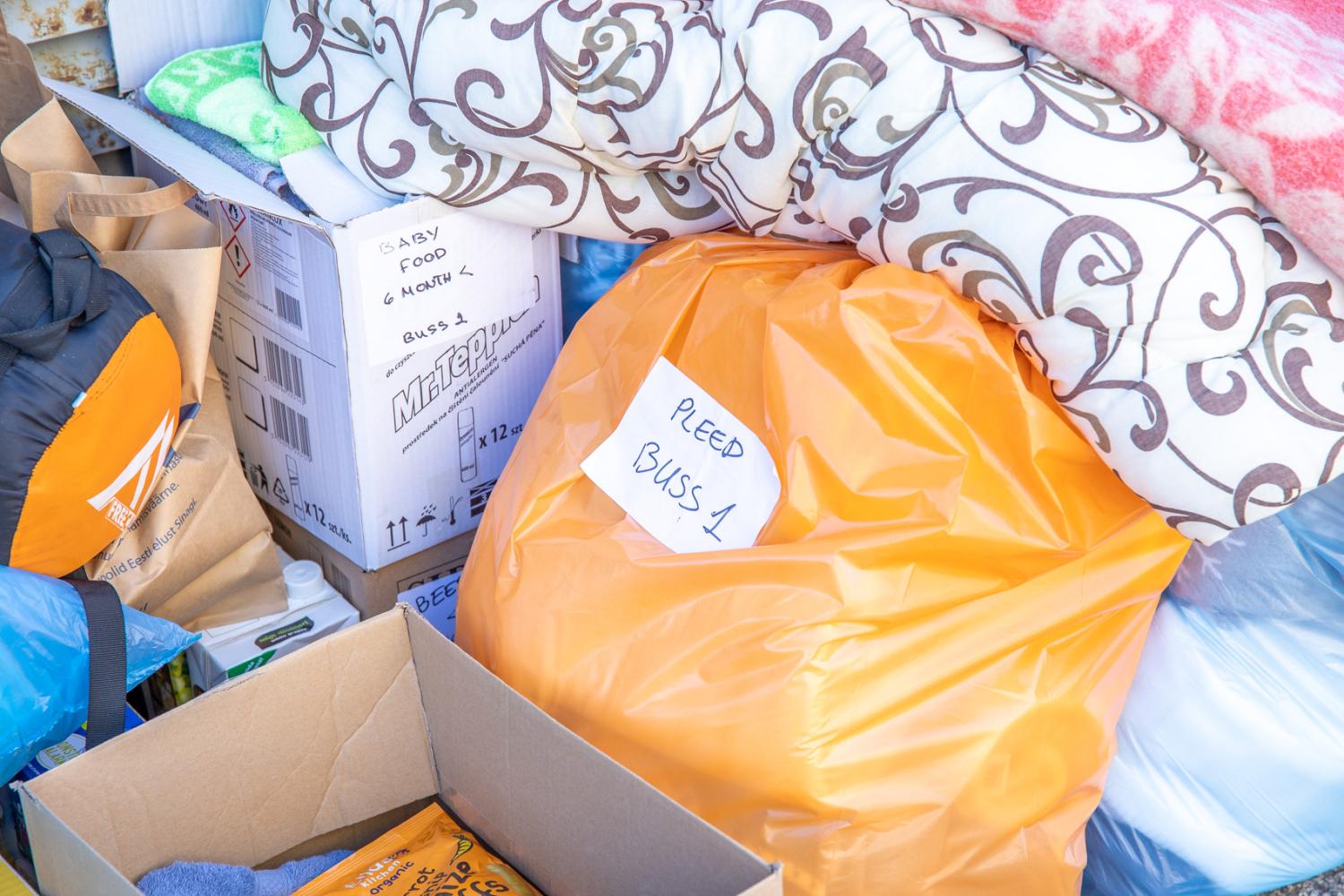Koguti kokku turvatoole, tekke, patju, vett, toidukraami, villaseid sokke ja muud hädatarvilikku. Linnarahvas sai tooted tuua pühapäeval kella 14ni Saagu Parema otsaaknasse, kus töö käis superkiirelt ja vägagi organiseeritult. Kella poole kahe paiku olid enamik asjad olemas. Kel soovi omalt poolt veel midagi täienduseks tuua, siis vähemuses olid beebitoidud. "Ma olen siin lähtunud sellest, et näiteks, mida ma emana võtaksin kaasa kui läheksin lastega bussireisile Poola? Paneme muuhulgas bussipeale ka näiteks esmased hügieenitarbed ja ka ravimid. Mõtlesime ka sellele, et kui neil inimestel on jahe, siis bussireisil on villased sokid esmane, mida hea soe jalga tõmmata," selgitas Saagu Parema hing Piret Haljend ja lisas, et kogumisega tegeleti kella 14ni, siis jääb piisav varu aeg, et kõik vajalik kahte bussi organiseerida. "Me ei pea arvet, et kuhu mis toode läheb või kes mille täpselt endale saab. Kõik need asjad on mõeldud abivajajatele ja me ei soovi mingit aruandlust. Juhul kui bussi vastas on inimesi, kes ei tule bussile, kuid vajavad nendest toodetest midagi, siis see kõik on teretulnud. Peame usaldama üksteist ja aitama," lisas Haljend.