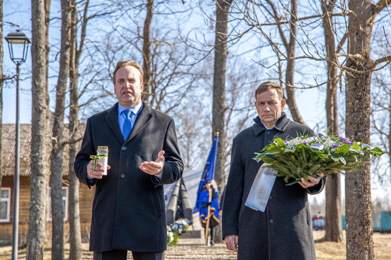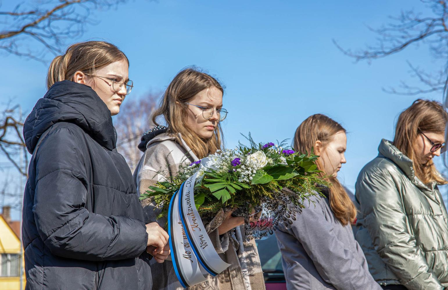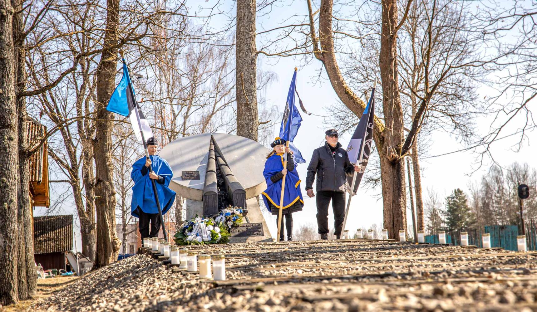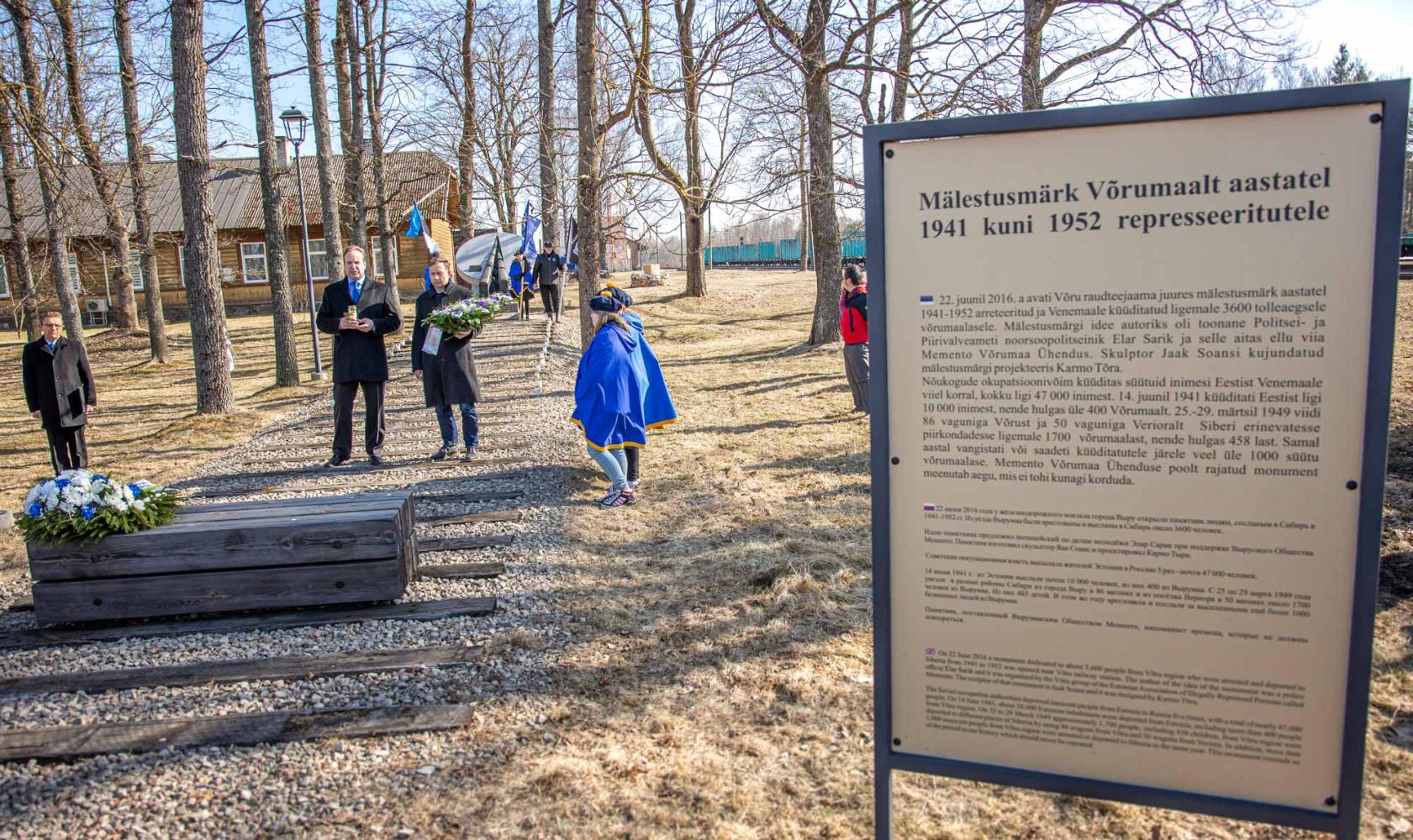 Pärjad ning küünlad asetasid mälestusmärgi jalamile Memento Võrumaa ühendus, Võru linnavalitsuse esindajad, Võrumaa arenduskeskuse esindaja, Kaitseliidu esindus, politsei- ja piirivalveameti esindaja, Võrumaa sõjameeste ühendus, Võru Kreutzwaldi kooli ning Võru gümnaasiumi õpilased ning teised kohalviibijad.