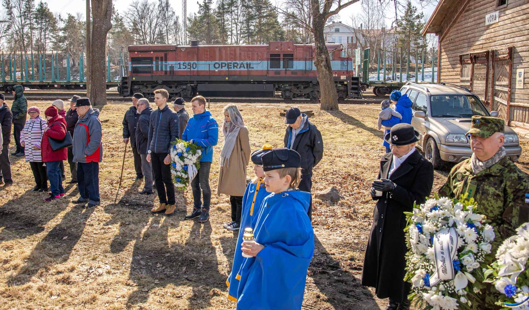 Tänasel Võru raudteejaamas toimunud mälestussündmusele kogunes tavapärasest rohkem rahvast.