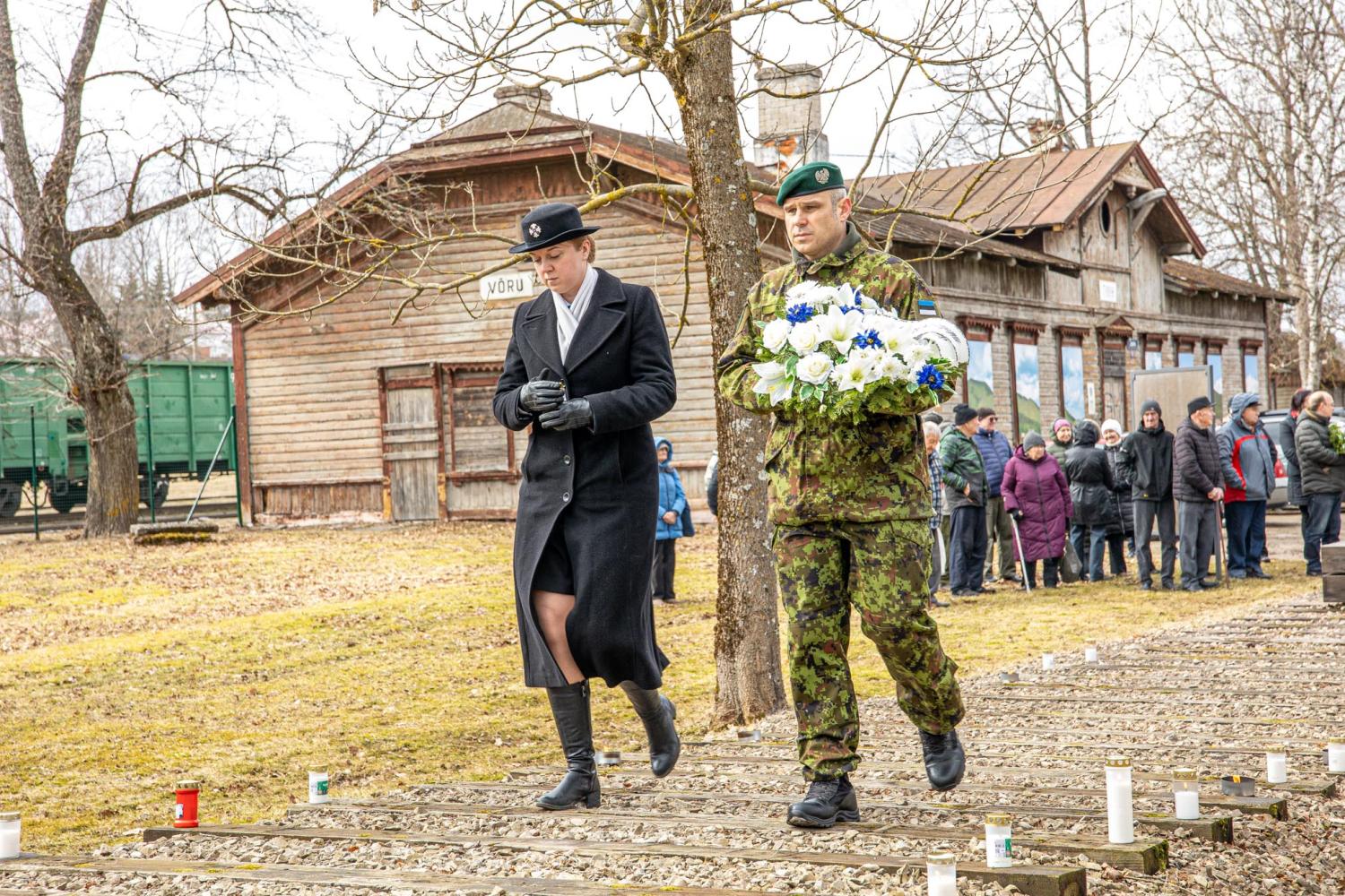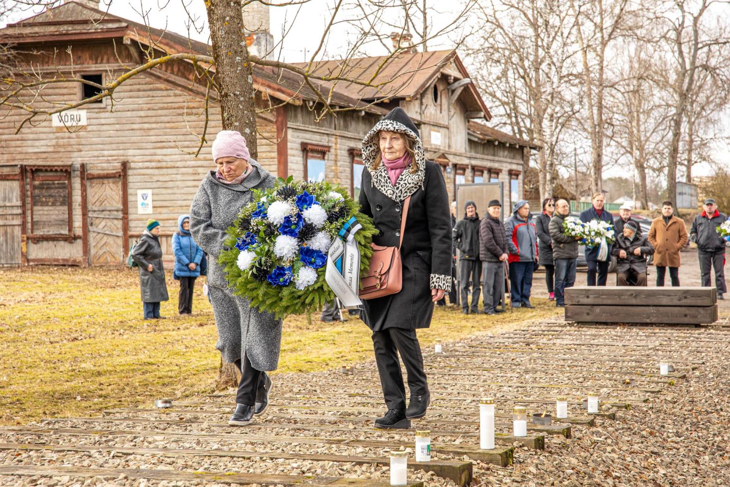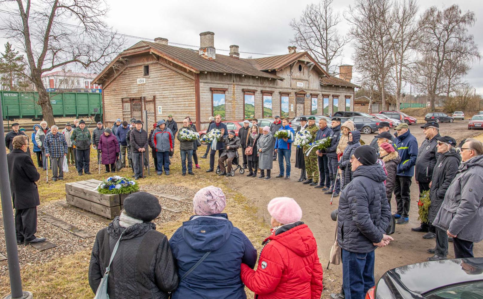 Võru raudteejaamas toimunud mälestusüritusel asetasid mälestusmärgi jalamile pärjad Memento Võrumaa esindus, Võru linnavalitsus, Kaitseliidu Võrumaa malev, politsei- ja piirivalveamet, Võrumaa Sõjameeste Ühendus, Eesti Leegioni Sõprade Klubi ja Sotsiaaldemokraatlik Erakond.