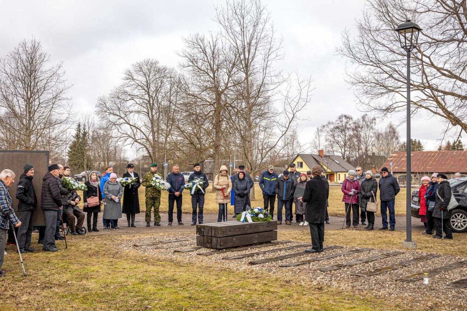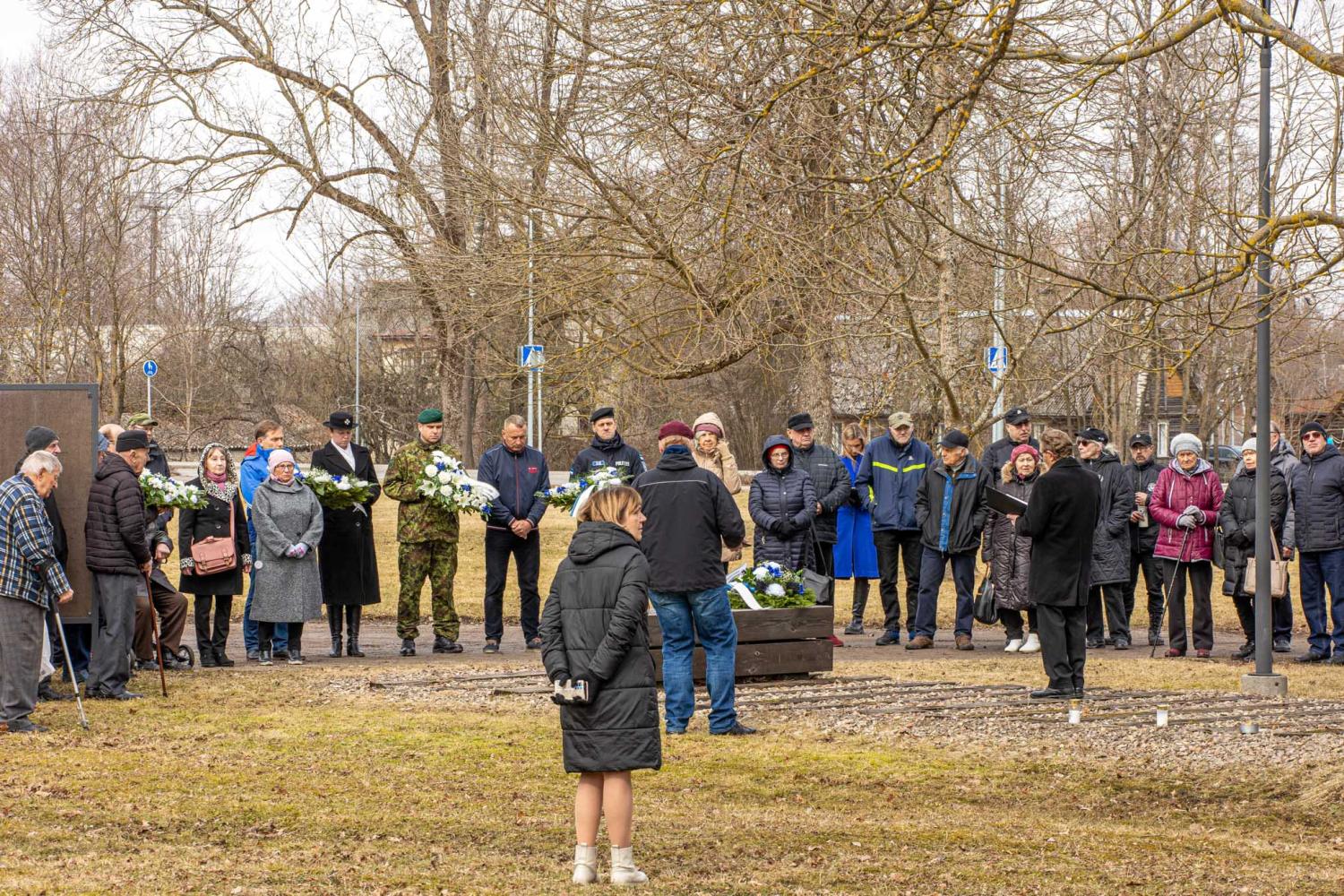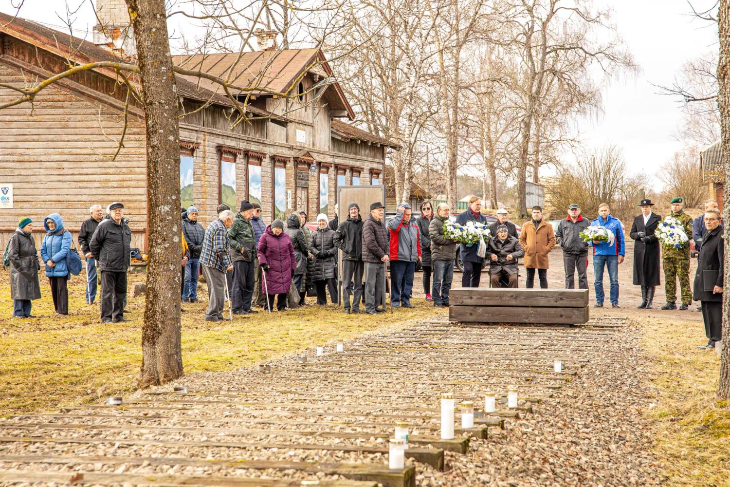 Võru raudteejaamas toimunud mälestusüritusel asetasid mälestusmärgi jalamile pärjad Memento Võrumaa esindus, Võru linnavalitsus, Kaitseliidu Võrumaa malev, politsei- ja piirivalveamet, Võrumaa Sõjameeste Ühendus, Eesti Leegioni Sõprade Klubi ja Sotsiaaldemokraatlik Erakond.