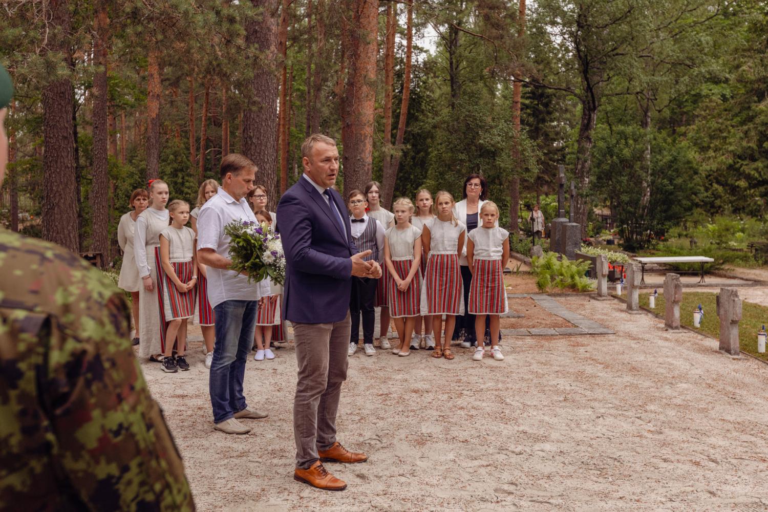 Kalmistule jõudis ka Eesti Vabariigi presidendi Alar Karise süüdatud võidutuli, millelt kõik kohaletulnud said võimaluse võtta kaasa võidutuli ka oma koduhoovi lõketesse.