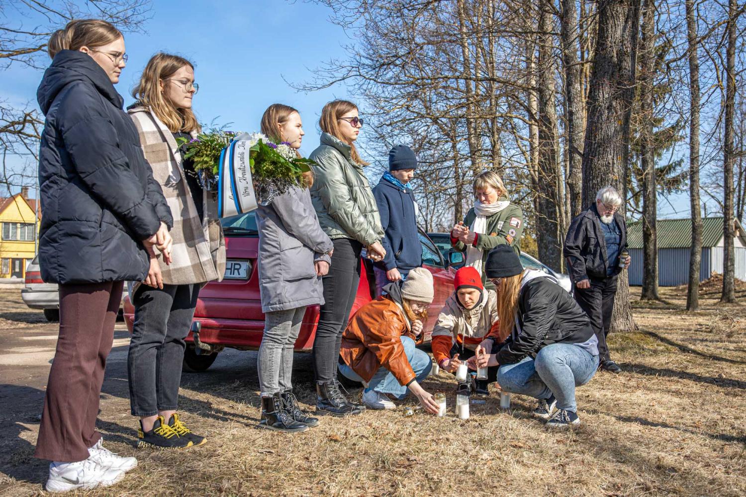 Pärjad ning küünlad asetasid mälestusmärgi jalamile Memento Võrumaa ühendus, Võru linnavalitsuse esindajad, Võrumaa arenduskeskuse esindaja, Kaitseliidu esindus, politsei- ja piirivalveameti esindaja, Võrumaa sõjameeste ühendus, Võru Kreutzwaldi kooli ning Võru gümnaasiumi õpilased ning teised kohalviibijad.