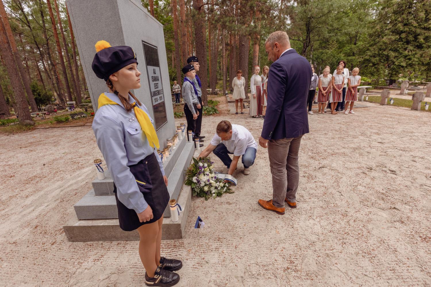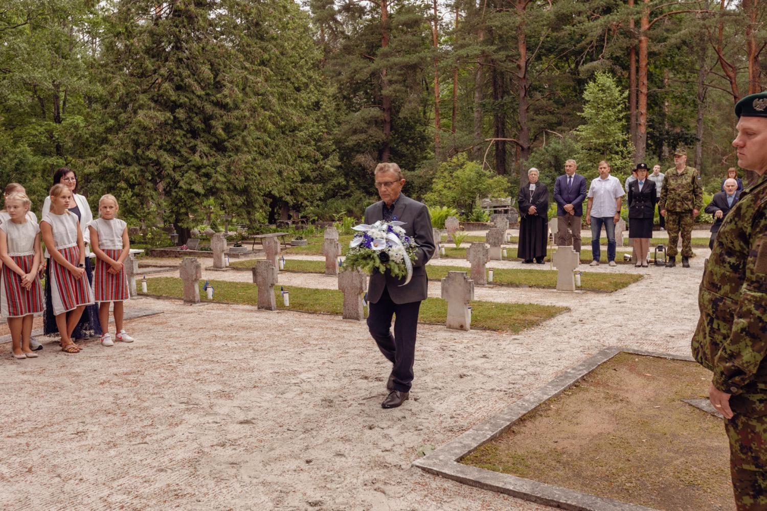 Kalmistule jõudis ka Eesti Vabariigi presidendi Alar Karise süüdatud võidutuli, millelt kõik kohaletulnud said võimaluse võtta kaasa võidutuli ka oma koduhoovi lõketesse.