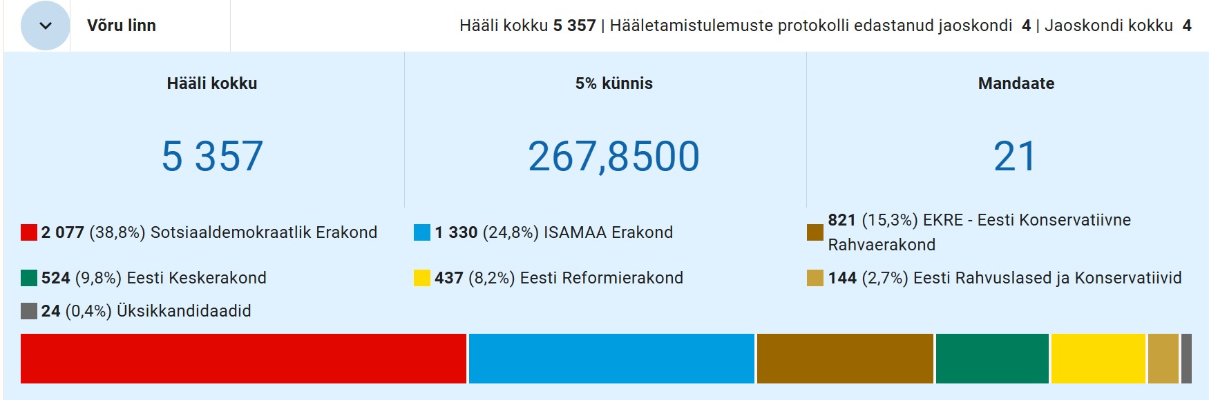 Võru linnas võitis kohaliku volikogu valimised Sotsiaaldemokraatlik Erakond (SDE).