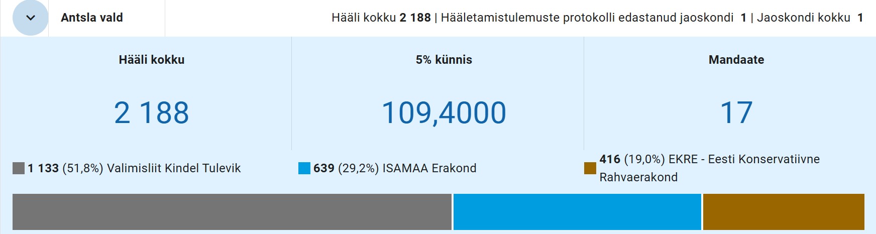 Isamaale toob 121 häält ehk 10,4 protsenti kaks mandaati.