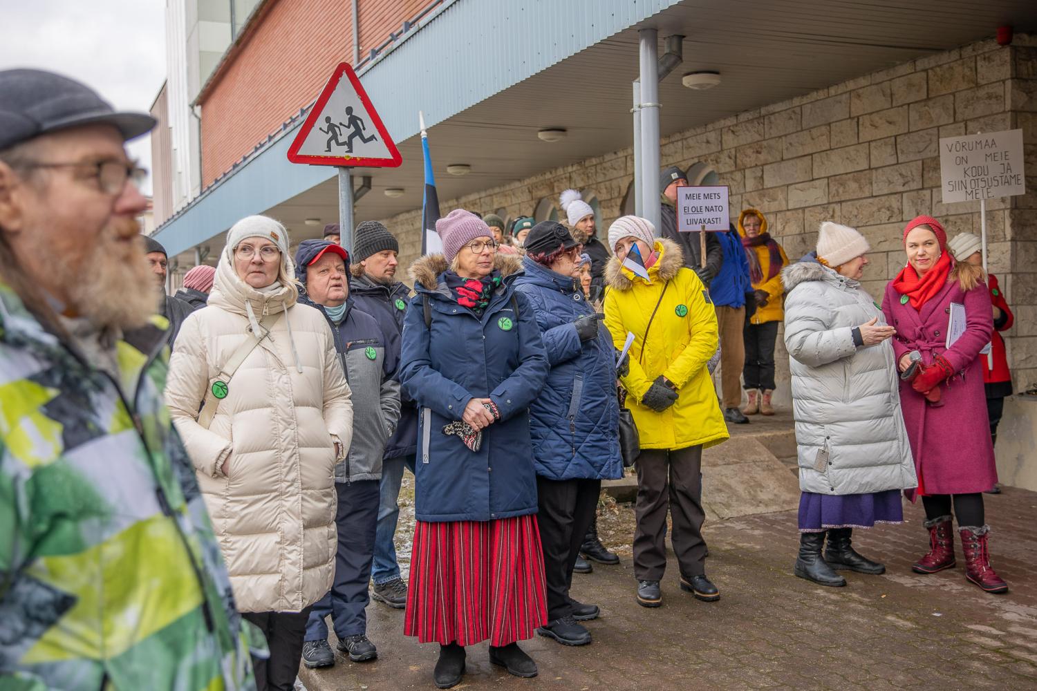 Kui Võrumaa Teataja ajakirjanikud kultuurikeskuse Kannel juurde jõudsid, olid esimesed meeleavaldajad juba kohal. Rahvahulk suurenes tiidsasti, välja toodi lipud ja plakatid. Proua, kes oli tulnud Eesti trikolooriga, avaldas lootust, et siiski jääb alles maja, millele seda lippu on siiani heisatud ja saaks edaspidigi heisata.