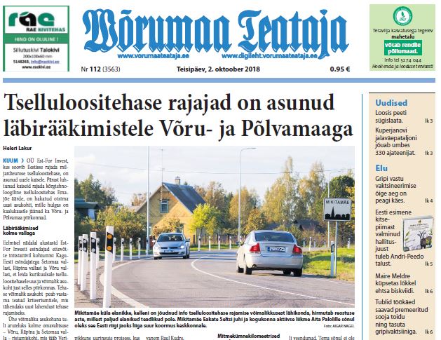 - Tselluloositehase rajajad on asunud läbirääkimistele Võru- ja Põlvamaaga